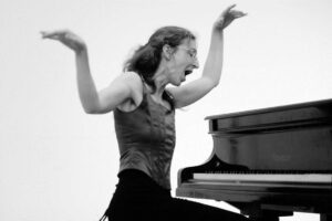 In Julia Hagemanns liedern sinken die Leichen nach rechts und links zur Seite, werden Frösche gekocht, Vermieter frittiert und Kolleginnen im Rhein versenkt. Das Ganze tarnt sich als Bildungsprogramm, was aber nur ein Vorwand ist, um das Publikum beschimpfen zu können. Wie – „Sie wissen nicht, was ’ne Passacaglia ist?“, springt von einem Kostüm ins nächste, erklärt, warum Männer schwerere Fernseher tragen können, aber früher sterben als Frauen, handelt die Geschichte der Oper und deren Bedeutung für die Gehirnforschung in wenigen Minuten ab, spielt Klavier und singt, was das Zeug hält. Schließlich hat sie’s studiert.